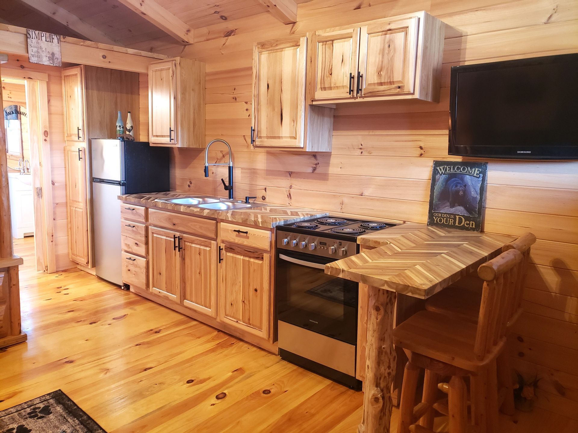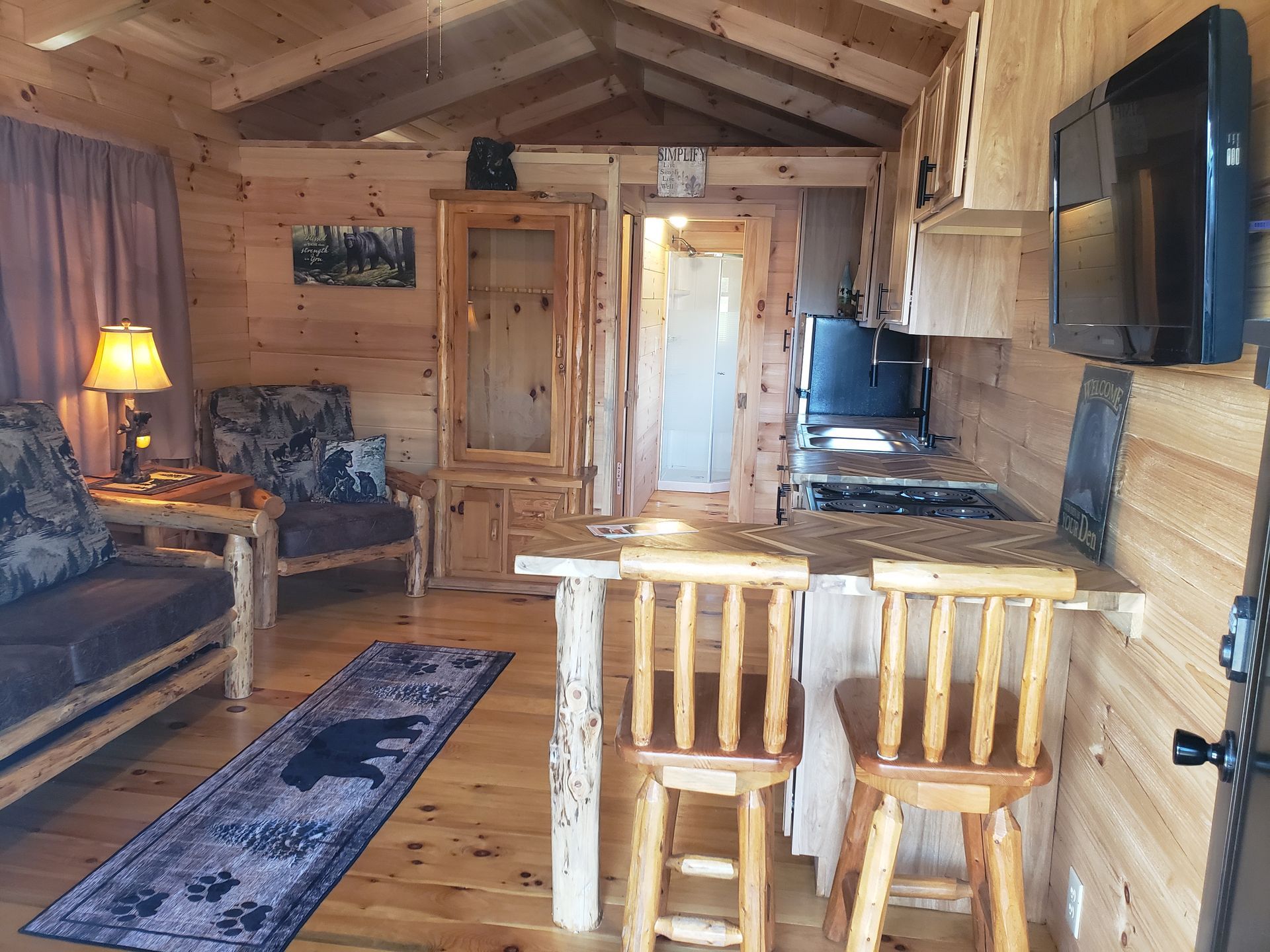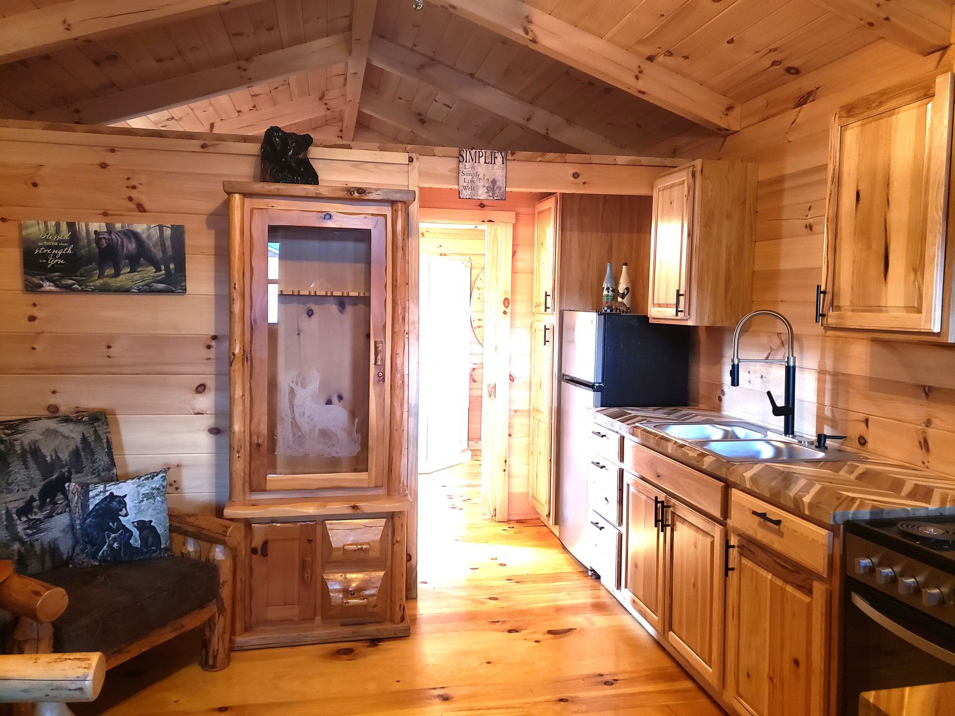 - Log Kitchenette: Microwave, Refrigerator, Sink, Coffee Pot, Toaster