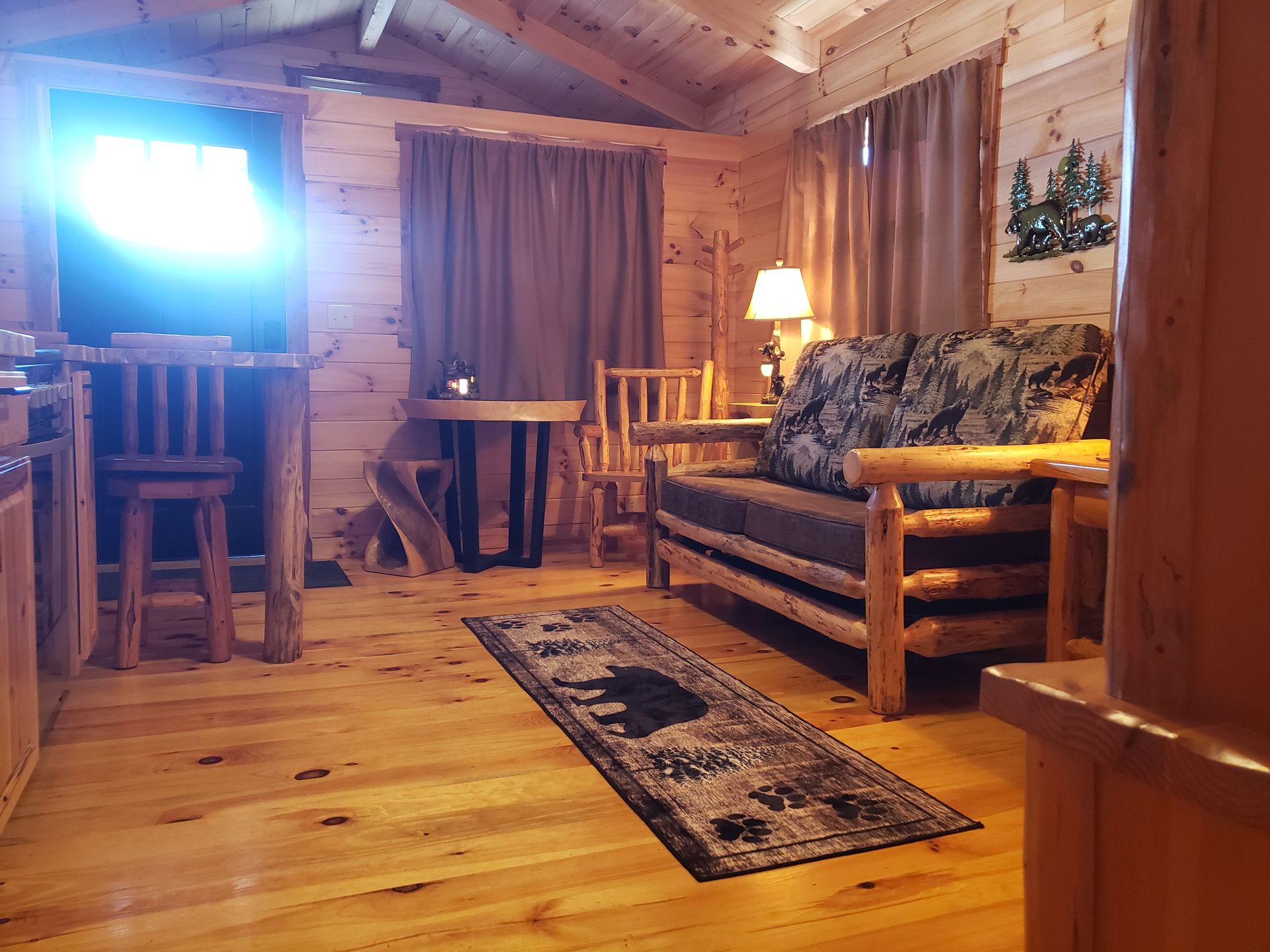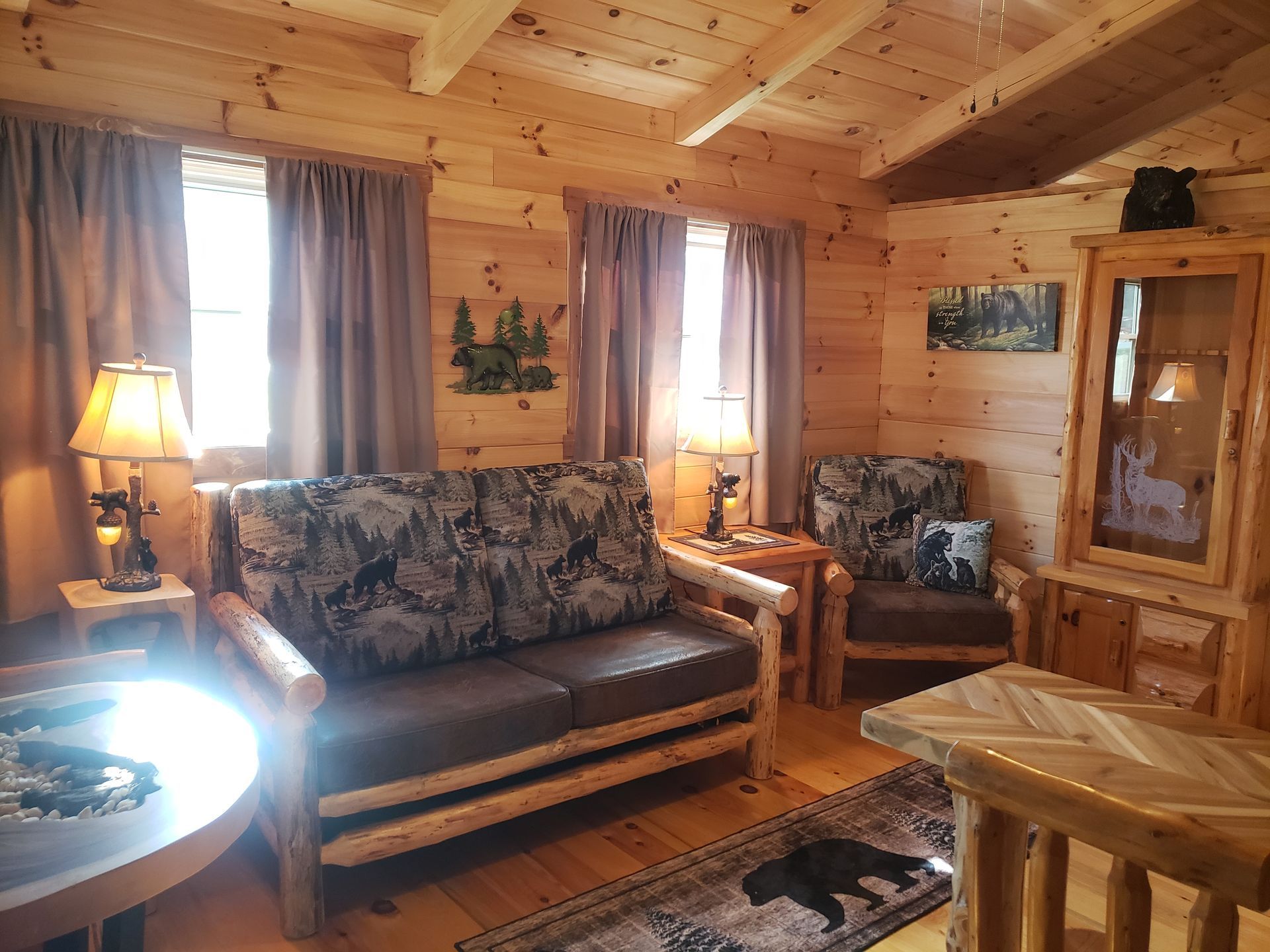 - Furniture!! Yes, Log furniture, sleeper sofa, tall dresser, king chairs with cushions, dining table with stools, dish cabinet