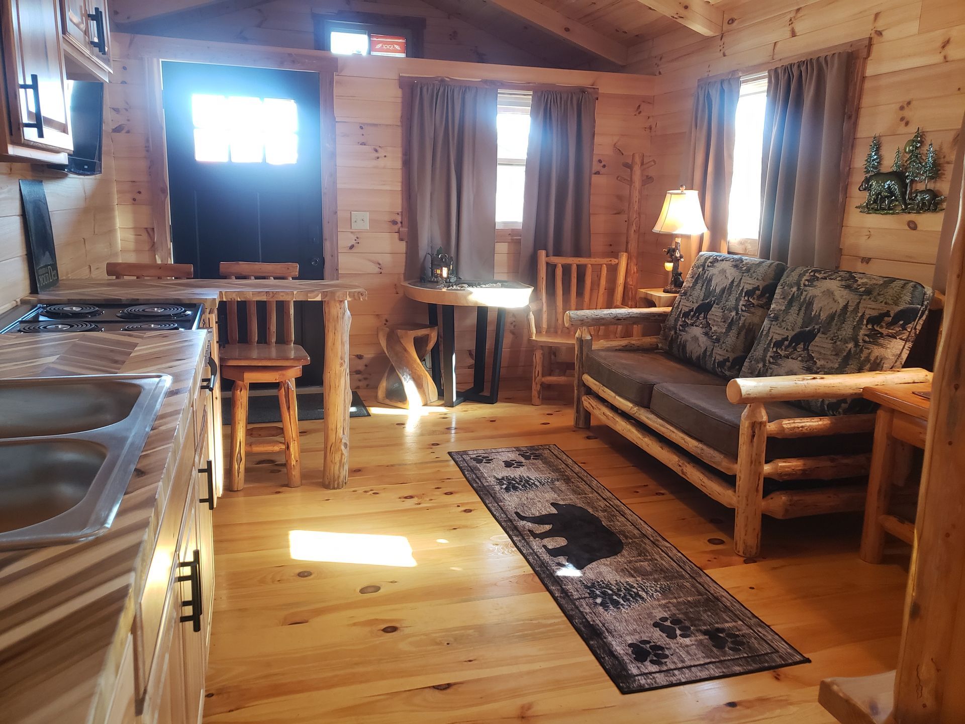 This hunting cabin features a spacious loft and is equipped with electricity, making it a convenient and comfortable retreat. Simply plug it in, and you're ready to enjoy your getaway in the great outdoors!